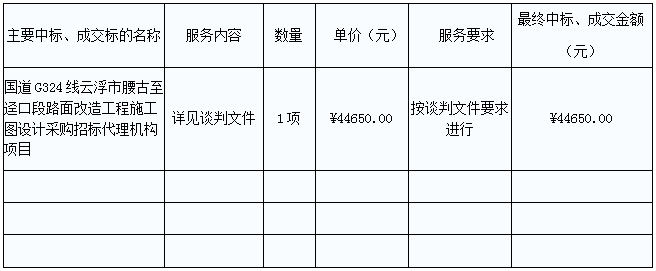 G324線云浮市腰古至逕口段路面改造工程施工圖設計采購招標代理機構(gòu)項目的中標、成交公告